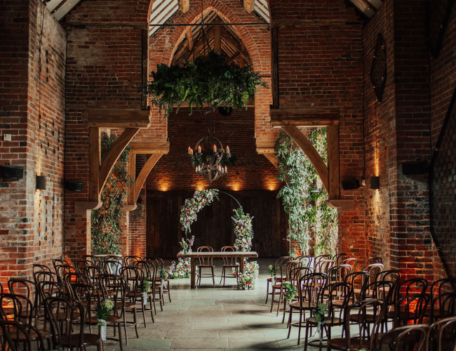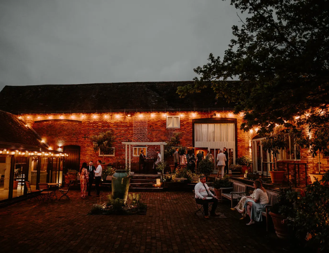 Nestled in the Worcestershire countryside, Curradine Barns is the perfect blend of charm and sophistication. This 19th-century red-brick barn offers a warm, inviting atmosphere with exposed beams, fairy-lit interiors, and a beautiful courtyard for al fresco celebrations.